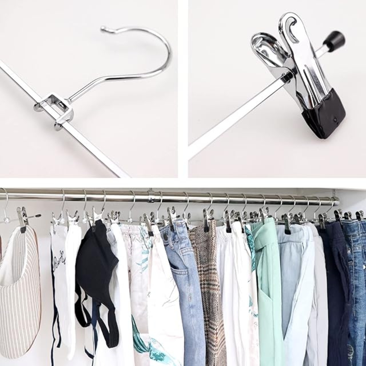 【可動式クリップで位置調整可能!】クリップは可動式で衣類の幅に合わせて位置を簡単に移動できます。大人用衣類から子供用まで幅広い衣類に対応し、様々な用途に適したハンガーです。