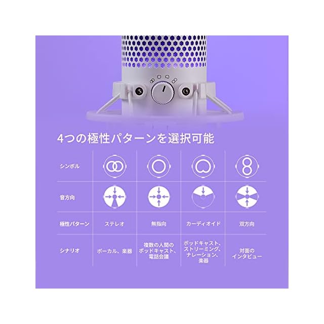 マウントアダプター、内蔵ポップフィルター、ヘッドホンジャック、複数のデバイスとプログラムに対応