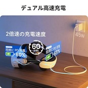 【デュアル高速充電&2倍速の充電速度:】KIWI design H4 Boost ヘッドストラップは「Dual Boost充電システム」により、ヘッドストラップとQuest 3/3Sを同時に充電可能。45Wアダプターを使用すれば、Quest 3/3Sに25Wの電力を供給しながら、内蔵バッテリーも 60 分で 65%に達し、2.5時間でフル充電できます。※ただし、最適なパフォーマンスを確保するためには、純正の充電器を使用してください。