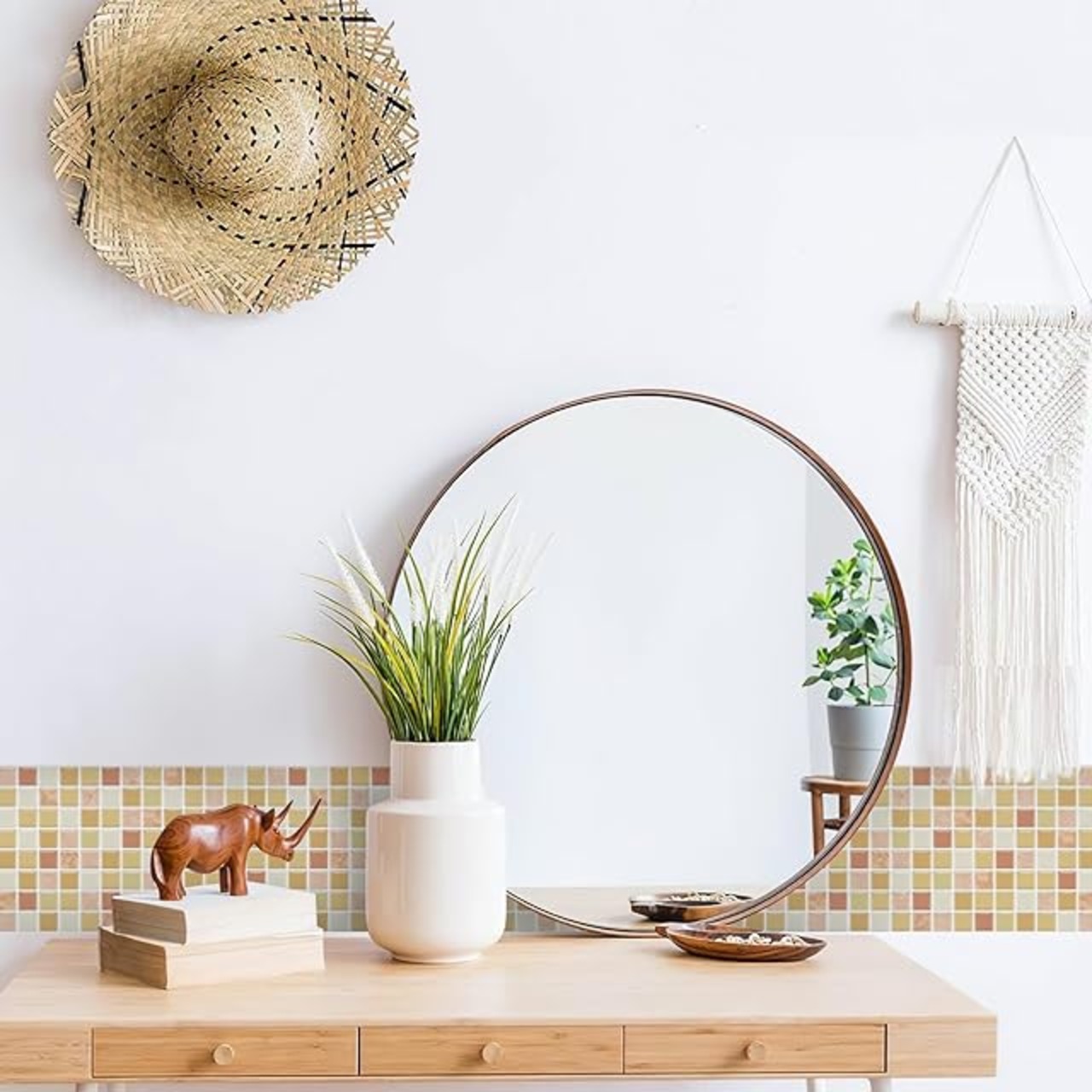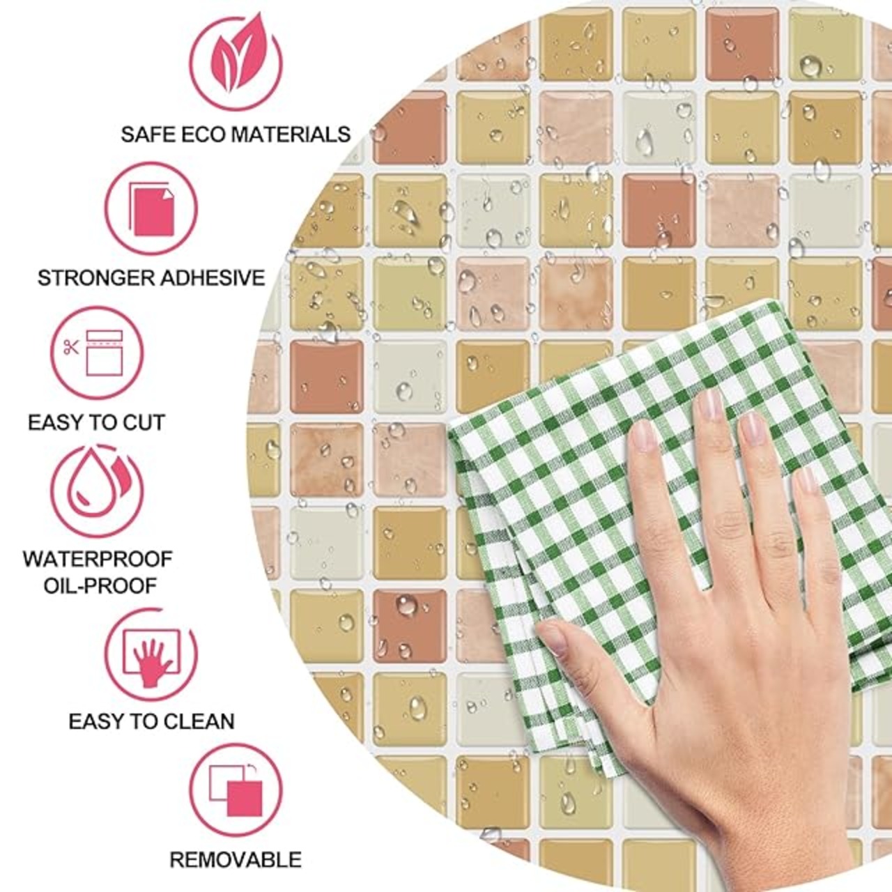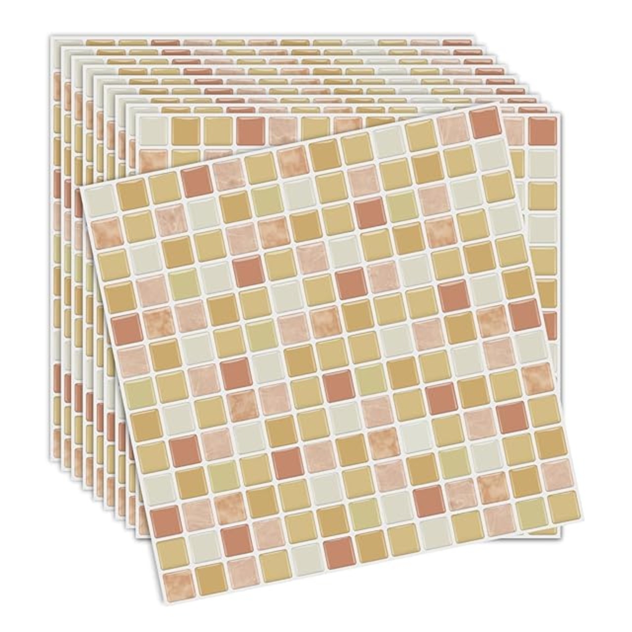 MORCART【20枚】タイルシール 防水 耐熱 キッチン 洗面所 トイレ DIY 家具やアイテムの装飾 モザイクタイルシート 壁紙シール 3D リメイクシート (25x25cm, イエロー)