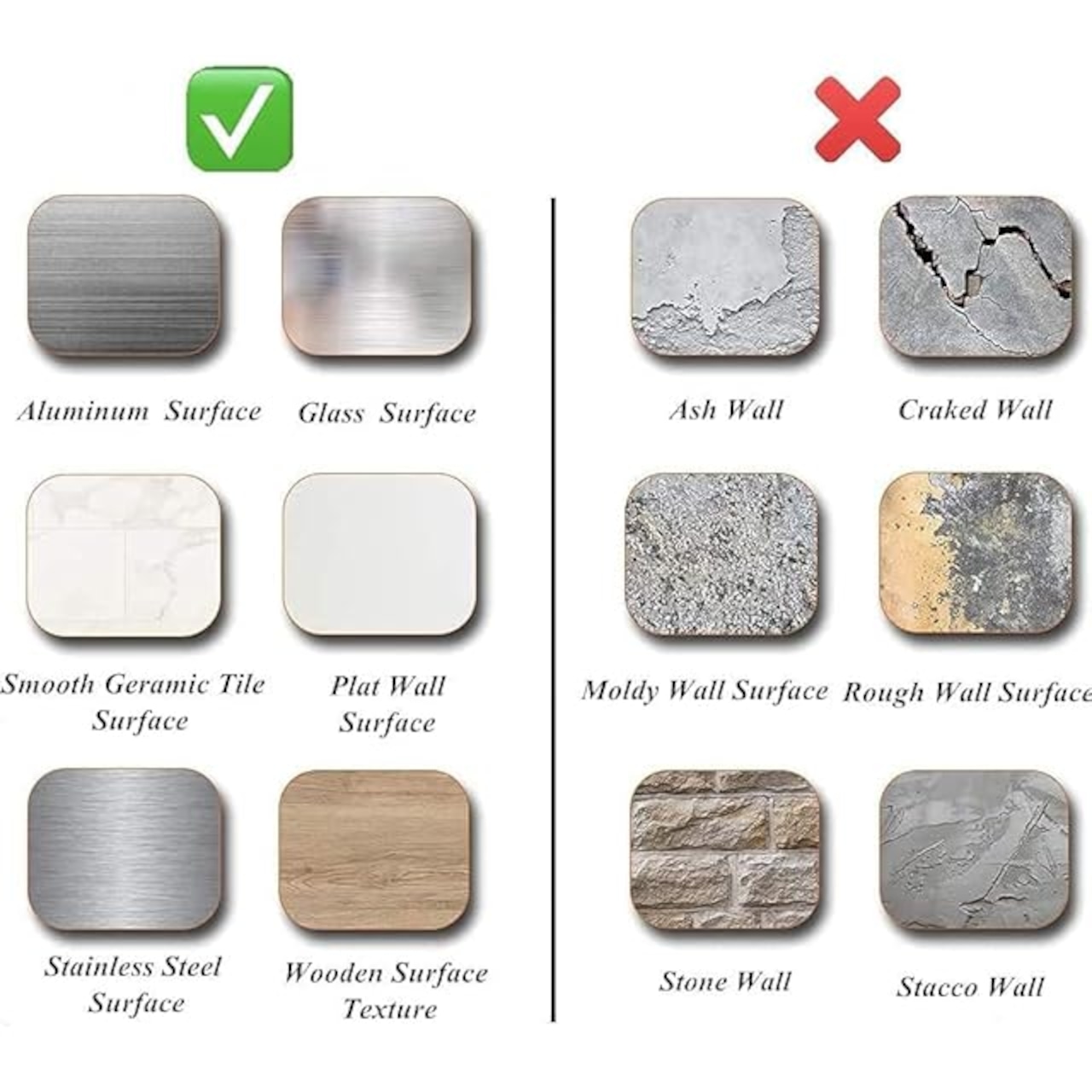 ✅ 使用面の要求:タイルシールを貼る前に、必ず貼る対象物の埃や汚れを取り除き、表面が滑らかで平らな状態を保証してください。例えば、セラミック表面、ガラス表面、平らなソリッドウッドの板表面などです。粗くて凹凸のある表面に貼り付けるのに適用していません。例えば、レンガの壁、石垣、石膏の壁、剝がれやすい壁紙、灰の壁などです。(関連する壁体表面の製品写真がありますので、ご参照ください。)