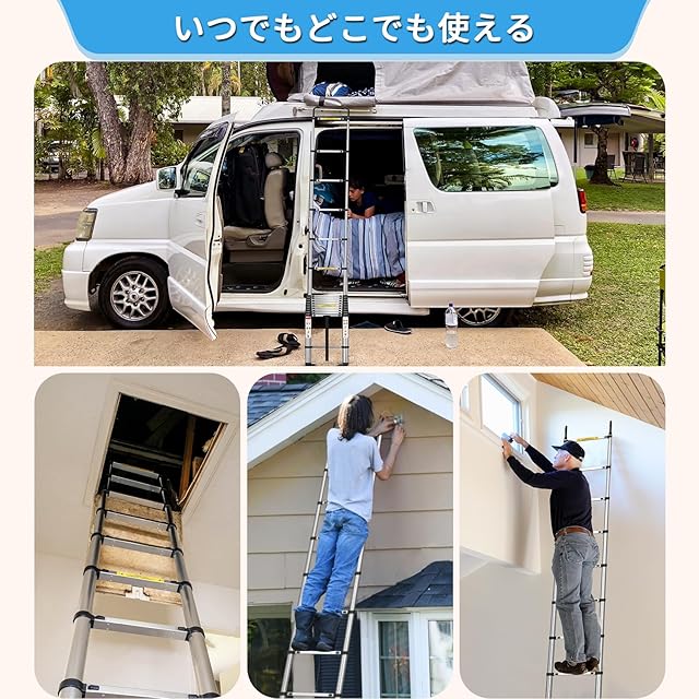 この伸縮はしご、あらゆるスタイルの家庭や職場の要件に適合できます。様々なシーンで大活躍:室内室外,壁掃除、窓ふき、屋根掃除、電球交換など、雪おろし 洗車 足場 。窓掃除や屋根の掃除にも幅広く活用できます。れがあれば、気軽に電球交換ができ、そのほかにも窓ふきや枝の手入れ、車の洗濯、外塀修理、屋上の除雪、屋根の水槽を片付けることなど、様々な問題が解決できます。生活がより便利で快適になります。
