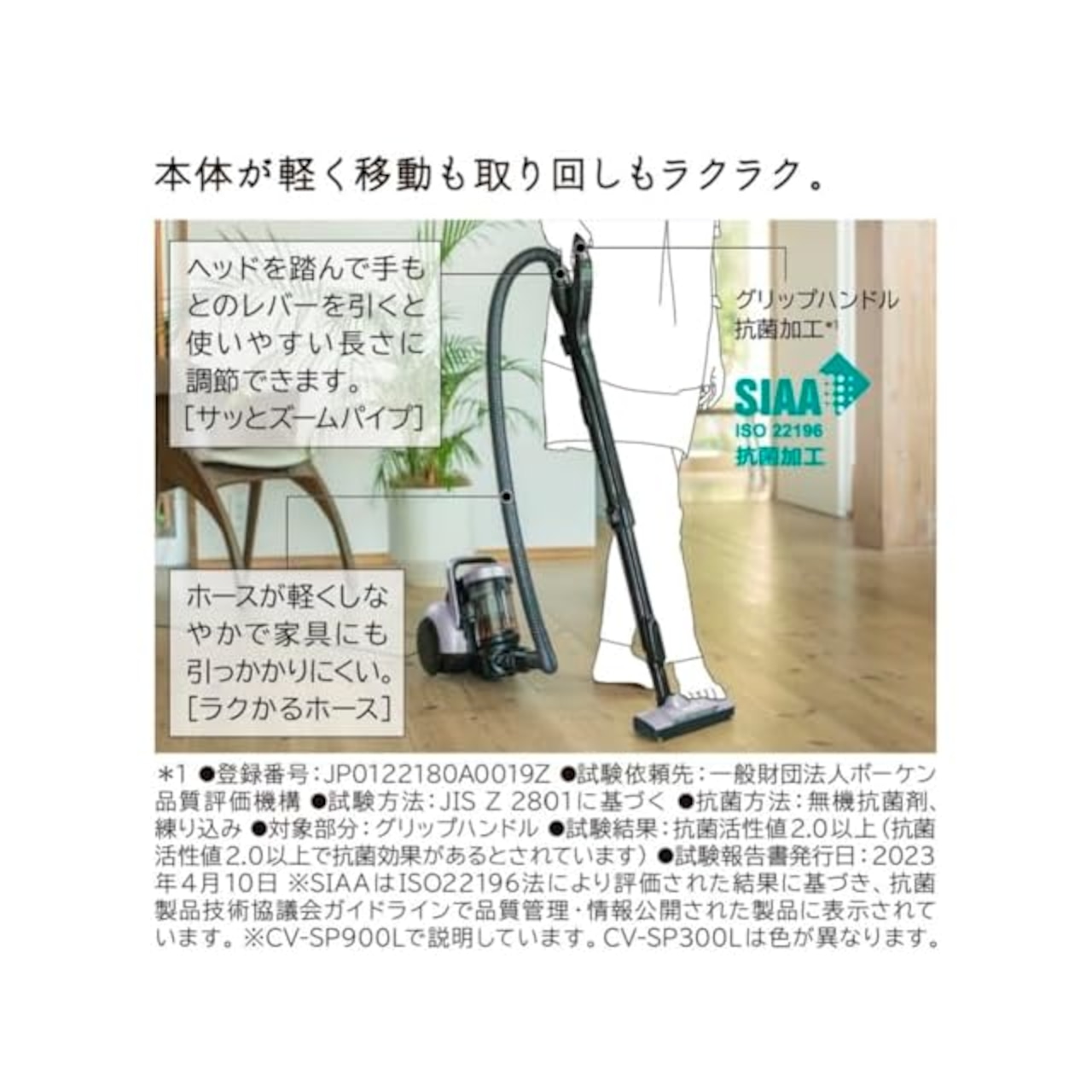 軽量2.5kg(本体質量)で移動も取り回しもラクラク