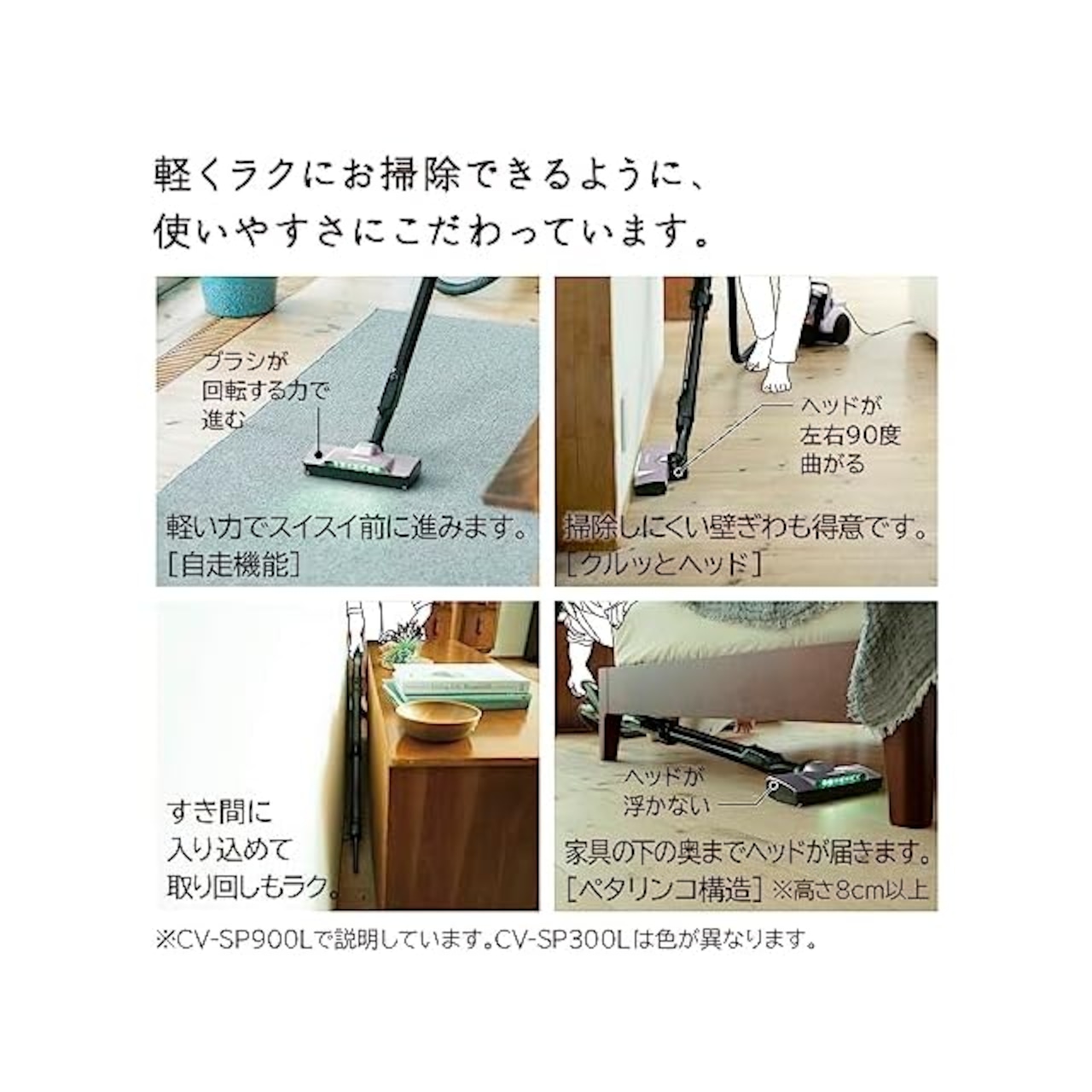 強力パワー300Wでフローリングの溝やじゅうたんのごみもしっかり吸引