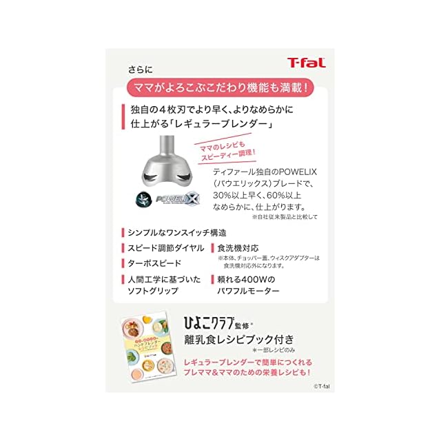 ティファール ハンドブレンダー ミキサー 電動泡立て器 離乳食づくり 1台6役 つぶす・混ぜる・切る・刻む・泡立て 「ハンドブレンダー べビーマルチ」 レシピブック付き HB65H8JPA 母の日 父の日 ギフト プレゼント | primer