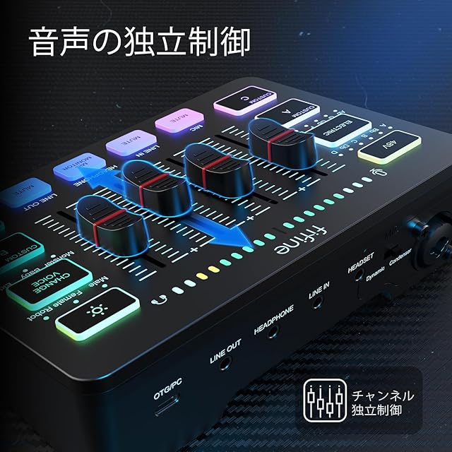 FIFINE ゲーミングオーディオミキサー オーディオインターフェース PC/PS4/PS5対応 ゲーム用オーディオミキサー ポッドキャスト ミキサー RGB機能付き ボイスチェンジャーボタン カスタム効果音 配信 実況 XLR接続 ミキサー FIFINE AmpliGame SC3 | primer