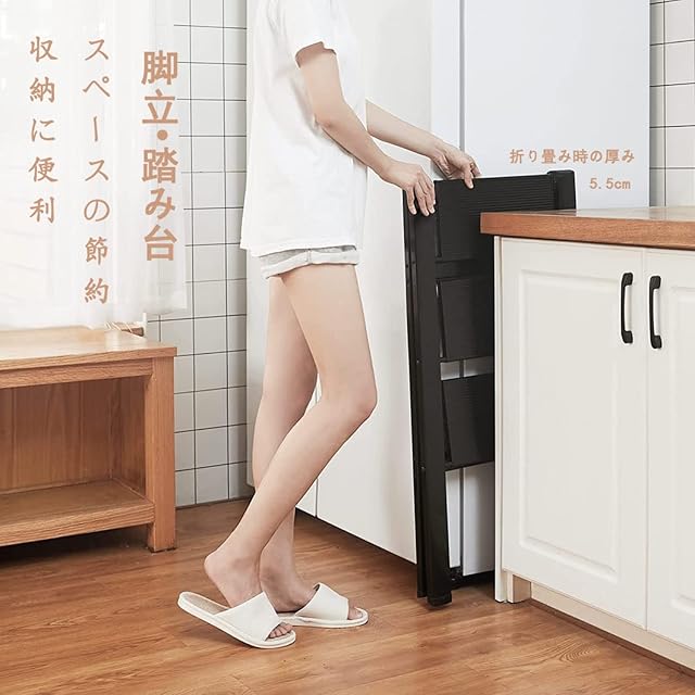 【省スペース】このはしごは、手を傷つけないで、簡単に折りたためます。狭い空間でも収納でき、非常に便利です。
