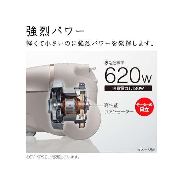 軽くて小さいのに吸込仕事率620Wの強烈パワーを発揮。