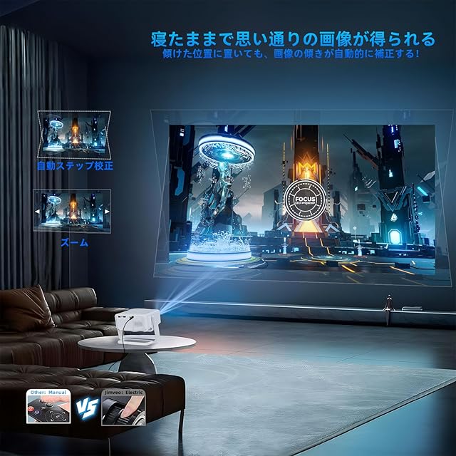 【自動台形補正・電動フォーカス・ミラー回転可】プロジェクターを上下に動かした場合、手動で調整するのに時間がかかり、困っているでしょうL02の革新的な自動台形補正技術は、最大40までの傾き角度を識別し、自動的に補正することができます市場に手動でフォーカスを調整する必要があるプロジェクターが多いです想像してみてベッドで映画を見ているときに、フォーカスを調整したくなったら、プロジェクターのそばまで立ち上がって手動で調整しなければならず、面倒ではないでしょうかL02は、電動フォーカス機能を搭載していますリモコンでフォーカスを簡単に調整し、何をしても、動かすことなく調整できますプロジェクターを使ってソーシャルメディア上の動画を見たことがありますか16:9の画面比に適応できないため、映画のような没入感を楽しむことができません 進化版のL02プロジェクターなら、OKボタンを押すだけで、縦向きの映像が自動的に横向きに回転し、画面いっぱいに映し出されますこれにより、より没入感の視聴体験を楽しむことができます一人でも、友人や家族と一緒でも、快適で楽しい視聴体験を提供します