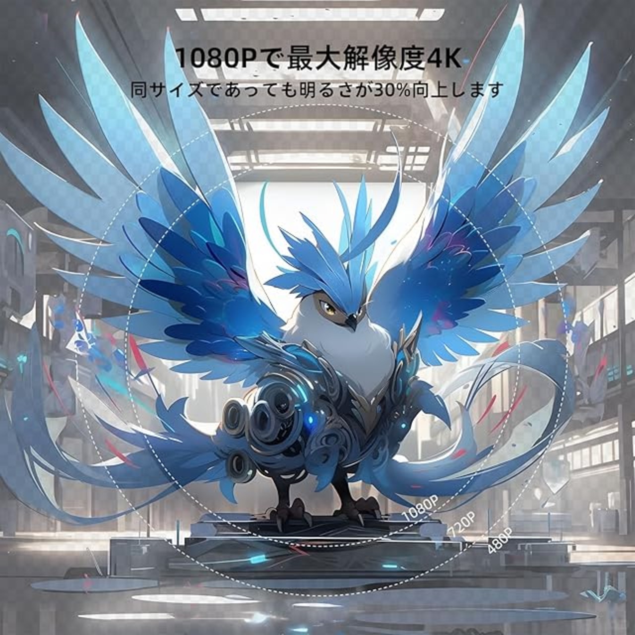 【1080P・18000ルーメン・4K対応】L02ホームプロジェクターは、最新の1080P解像度技術を採用しています従来の1080Pに比べて、明暗のディテールが鮮明に表現されることができます投影画面の明るさの差を効果的に軽減し、目の疲れを軽減し、子供の視力を保護します明るさは18,000ルーメンに増加し、他の小型プロジェクターより60%以上高いです4Kビデオ再生をサポートしており、高輝度と高解像度の組み合わせにより、自分や家族、友人が視覚的な世界に没頭し、よりリアルで視聴体験を楽しむことができます調査によると、多くの日本人は広くない家に住んでおり、市場の小型プロジェクターは短距離での投影画面が小さく、ホームシアターの体験感が大幅に低下します L02は、距離投影テストを繰り返し、投影比率を最適化し、投影距離を0.8m〜5mに設定して、同じ距離で小型プロジェクターに比べてより大きな画面を投影します家が大きくない一人暮らしをする人や家族に適しており、テレビは場所を取り、高価ですが、L02家庭用プロジェクターは間違いなく最高のコストパフォーマンスを提供する選択肢です