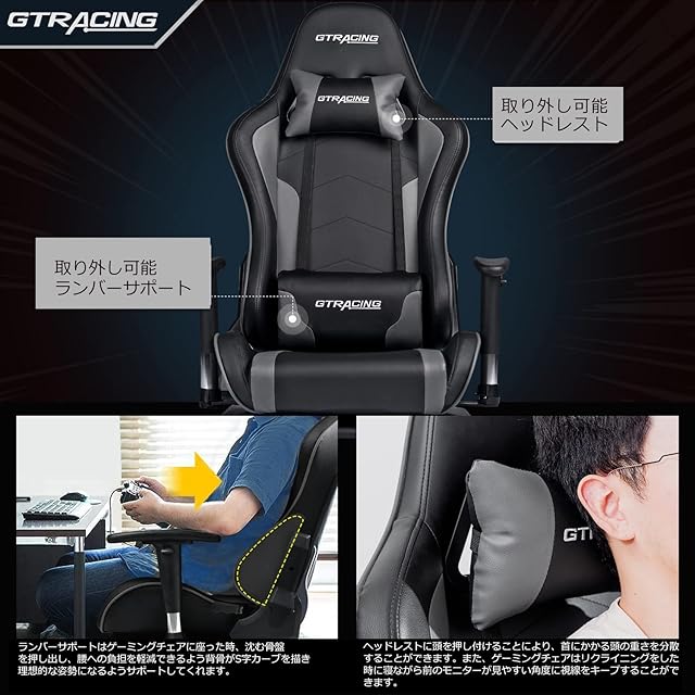 GTRacing ゲーミングチェア 座椅子 ゲーム ゲーマーズ ハンコンスタンド座椅子の自作、XBOX PS5 PS4 switchなどレースゲームの臨場感を楽しめ ゲーマーの椅子 180°リクライニング 360° 回転 上下肘掛 腰痛対策 (Gray) | primer