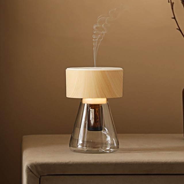 Minidiva アロマランプ・ナイトライト アロマディフューザー 水なし ネブライザー式 直立スタンド噴霧式 低騒音稼働 タイマー機能 USB-Type C充電 コードレス・コンパクト可能 DIYデザイン可能 間接照明 LEDライト インテリアおしゃれ お手入れ簡単 ベッドサイド・卓上使用 母の日 祝日・誕生日プレゼント Twilight(木目色) | primer