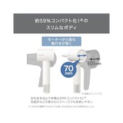 ノズルを短くし無駄を省いたI字型のボディで、本体を約320gまで軽量化。モーターをグリップに内蔵したことで重心バランスに優れた形状を実現。ドライヤーを振る際の手首の負荷を軽減します。 ※電源コードを除いた本体質量