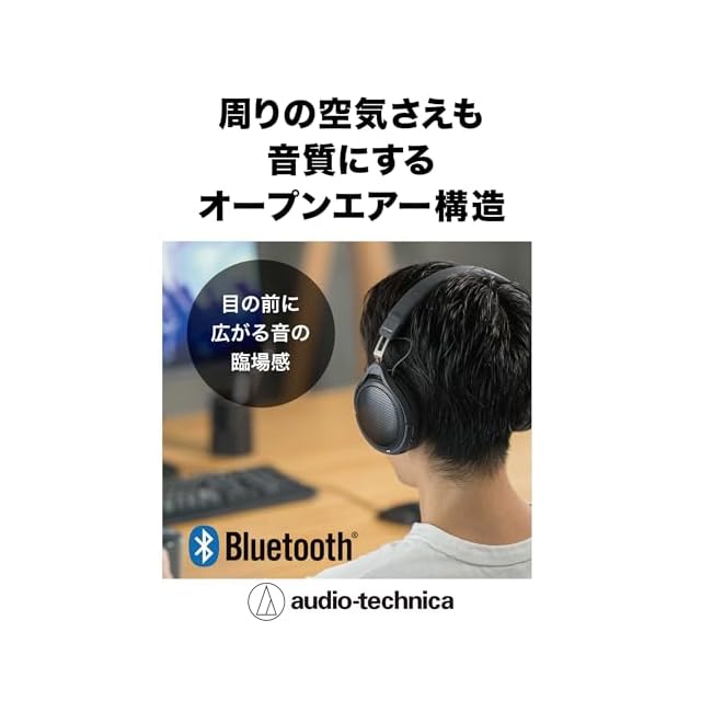 技適マーク認証済み商品(周波数帯:2.4GHz帯)●音の臨場感と、自由で解放感のあるワイヤレス。長時間の装着でも軽量かつ快適な着け心地 ●流れを解放するオープンエアー構造により、周りの空気とともに自然な音の鳴りや余韻まで存分に楽しめます ●ホームユースのワイヤレスヘッドホンとして最軽量クラス約220gを実現。側圧も軽く締め付け感がなく、動画や音楽に長時間没入することができます。