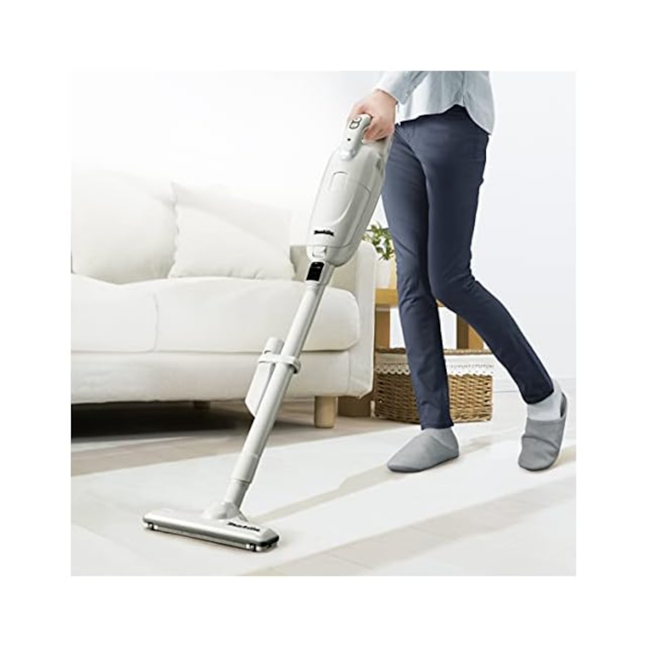 Li-ion10.8Vバッテリ内蔵式、紙パック式+ワンタッチスイッチモデル。吸込仕事率&使用時間アップ。バッテリ容量が2.0Ahになり吸込仕事率と使用時間がアップ。吸込仕事率はパワフルモードで35W。軽量ボディ&コードレスで手軽にお掃除。