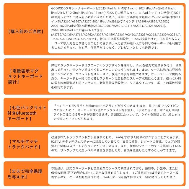 マジックキーボード GOOJODOQ 2024 iPad Air6(M2) 11inch対応スマートキーボード iPad Pro 11第1/2/3/4世代/iPad Air第4/5/6世代通用 トラックパッド付きキーボード ケース 7色バックライト付き 磁気吸着ケース 日本語配列キーボード 日本語説明書 ブラック | primer