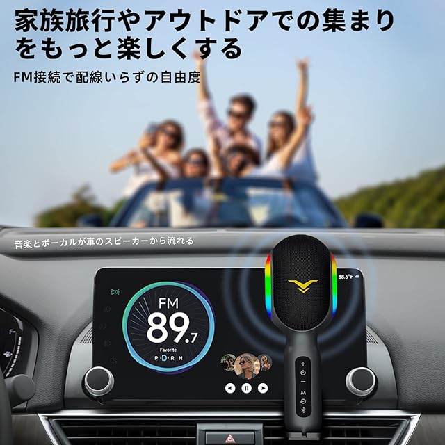 カラオケマイク 【新登場・一台5役】Bluetooth ブルートゥースワイヤレスマイク LEDライト付き 伴奏機能付き 4つのサウンドエフェクト 録音可能 音楽再生 FM接続で車内デュエットも可能 2500mAh大容量 Android/iPhone/ipad/ipods対応 家庭用 カラオケ/自宅/パーティー/カー/アウトドア/誕生日/祝い事/日本語取扱い説明書 | primer