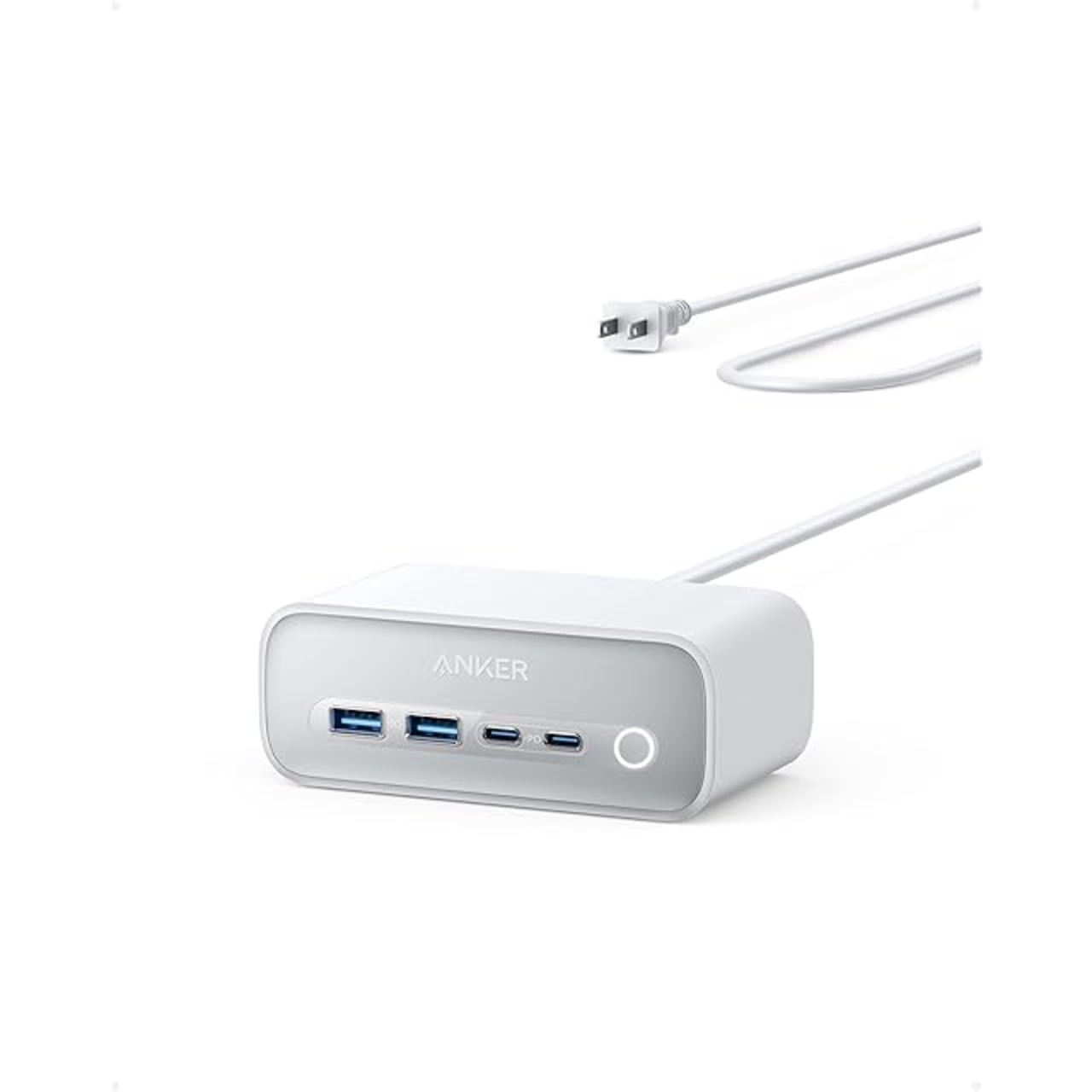 Anker 525 Charging Station/USB-C 2ポート USB-A 2ポート/AC差込口 3口/延長コード 1.5m/USB Power Delivery対応/MacBook Windows PC iPad iPhone Galaxy Androidスマートフォン ノートPC対応 (ホワイト)