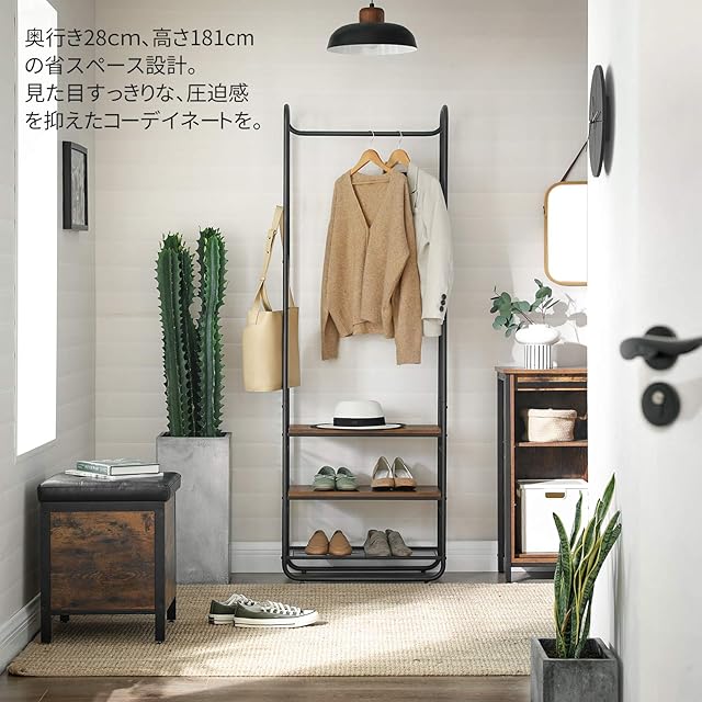 VASAGLE ハンガーラック 木製 スリム 頑丈 シューズラック コートハンガー おしゃれ 省スペース 組み立て簡単全体耐荷重41KG 組立簡単 幅58×奥行28×高さ181cm 玄関 コート掛け 型番HSR81BX/NHSR81BX | primer
