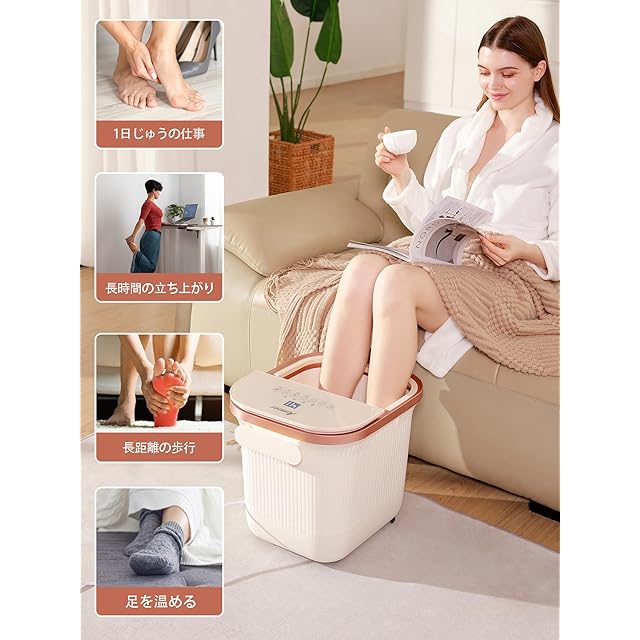 【最先端の人間工学設計】①高さを重視したバケツ設計(製品の高さ355mmで足を完全に浸すことができます)②隠し手提げ、バケツの両側に固定手、底部のローラーデザイン(簡単に移動および使用ができます)③隠し電源線収納デザイン(配線の収納を気にする必要はありません)④一体型の隠し排水口(排水管は不要で、ローラーと組み合わせることで安心して排水できます)●注意:本製品は無水状態での使用を厳禁します。そうしないと加熱部品が損傷する恐れがあります!製品に注水する前に、必ず製品底部の隠し式排水口がしっかり閉まっていることを確認してください。そうしないと製品が漏水する可能性があります。