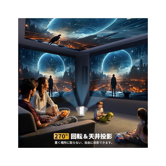 【270°回転可能&天井投影プロジェクター】 Sainyer F300プロジェクター 家庭用は2025年に新発売した小型プロジェクターです。270°回転可能なスタンドがプロジェクター 天井をしっかりサポートしています。それに、家庭用プロジェクター本体が0°から270°まで回転出来て、良い広い回転角度は寝室でも、リビングルームでも、天井でもどこでも綺麗に投影できます。特に寝ながらお好きな映画鑑賞活動に最適です!