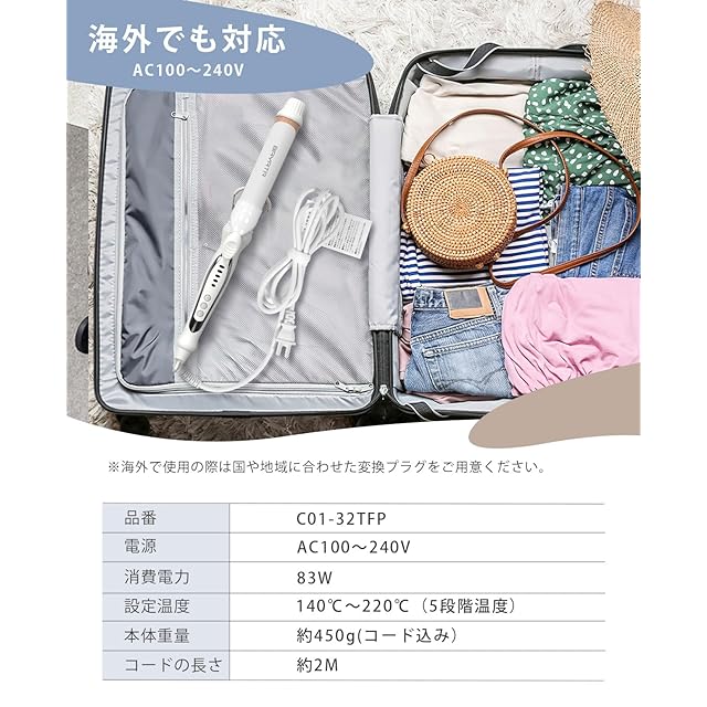 【海外対応】100V-240Vの電圧に対応します。機内持ち込み可能なヘアアイロンです。海外旅行・海外出張の方にオススメです。※変圧器が不要ですが、変換プラグを用意してください。