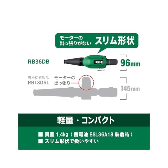 ブラシレスモーター採用により、小型・軽量化を実現!さらに、モーターの出っ張りが解消され持ち運びやすくなりました。