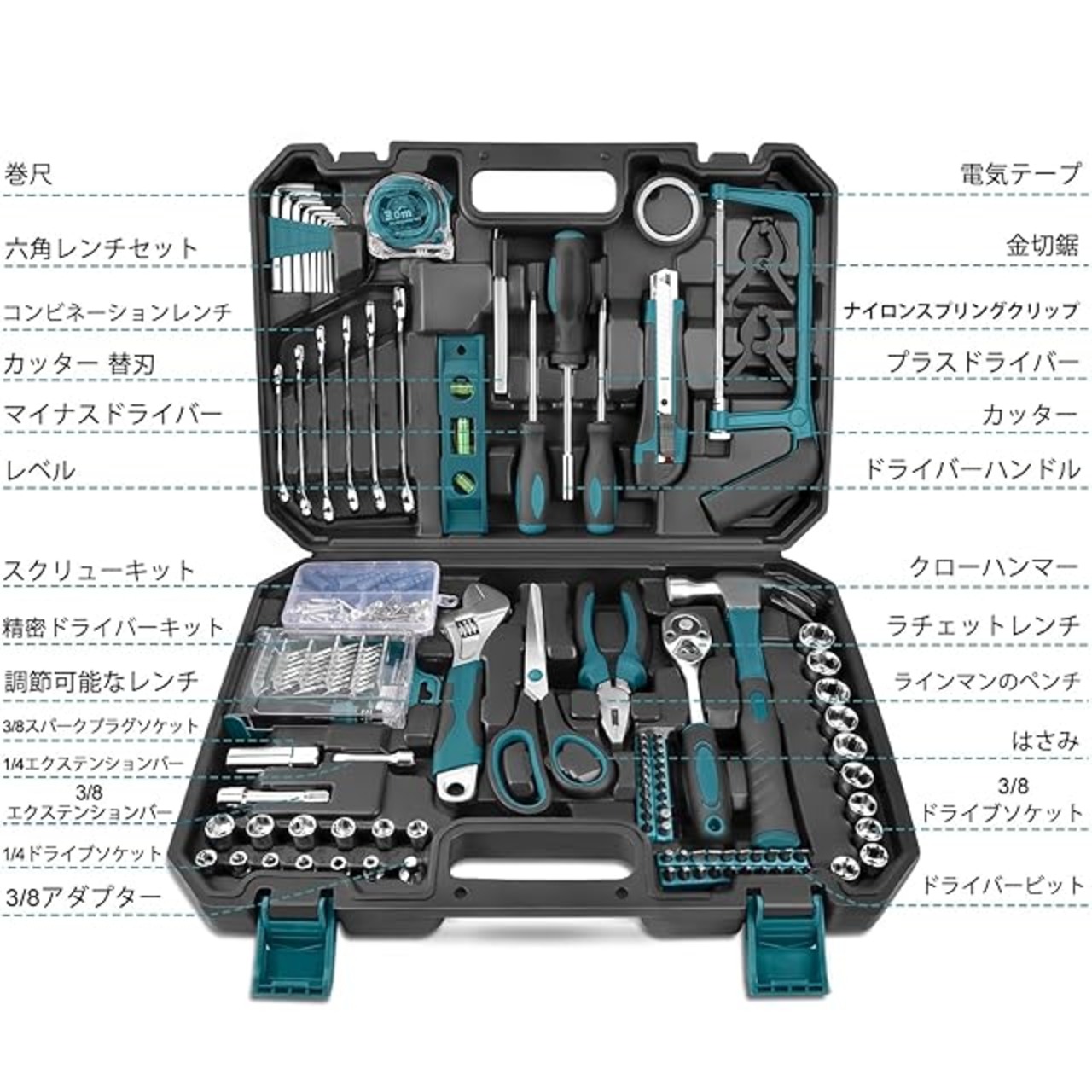【適用範囲】整備工具箱は家族、友達、パートナーの間違い無し選択です。 ツールボックスの中の工具は主に、トリガーグローブ、公制ソケットセット、ドライバーキット、ネジセット、ペンチ、センチメジャー等が含まれています。 家主、DIY、修理工、機械師、自動車修理工などに最適です。