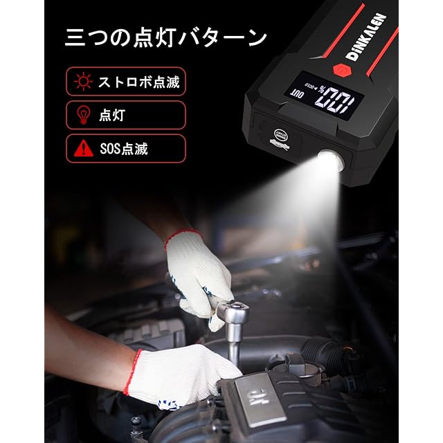 DINKALEN ジャンプスターター 12V バッテリー エンジンスターター 23800mAh 最大電流3000A LCDディスプレイ 急速充電 ライト付き 車内工具 便利グッズ モバイルバッテリー 軽量 車緊急始動 日本語取扱説明書付き | primer