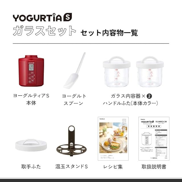【付属品】ガラス内容器×2・取扱説明書×1・ヨーグルトスプーン×1・レシピ集×1・温玉スタンドS×1・取手ふた×1