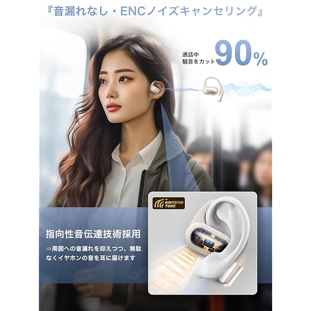 【音指向性伝導技術・音漏れ防止】空気指向伝導原理に基づき、オープン型のイヤホンの構造を最適化し、音の指向性伝播を実現しました。発音ユニットが耳の穴を完全にカバーし、音がより正確に耳に入るように、「高音質」と「低音漏れ」の両方に対して最適な効果を実現しています。また、イヤホンの内部には、音を遮断するための音響シールド素材が使用されます。これは、内部の音が外部に漏れ出さないようにするためのバリアとなります。音の逃げ道を最小限にし、音の漏れを抑制します。