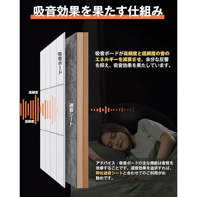 【使用上のアドバイス】吸音パネルの主な目的は音質の向上であり、室内の壁を70%以上覆うと効果がより顕著になります。より良い遮音効果を追求する場合、Moon Riverの防音シートとの併用がお勧めです。