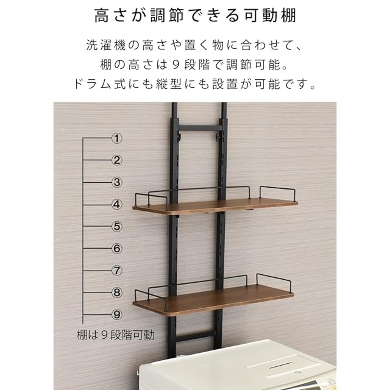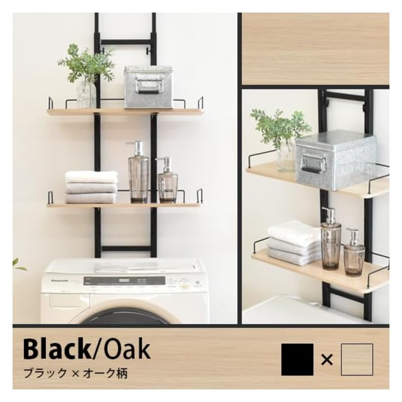 ekans(エカンズ) 棚付きランドリーラック 棚2段 突っ張りタイプ LSH-T200BN (ブラック×オーク)