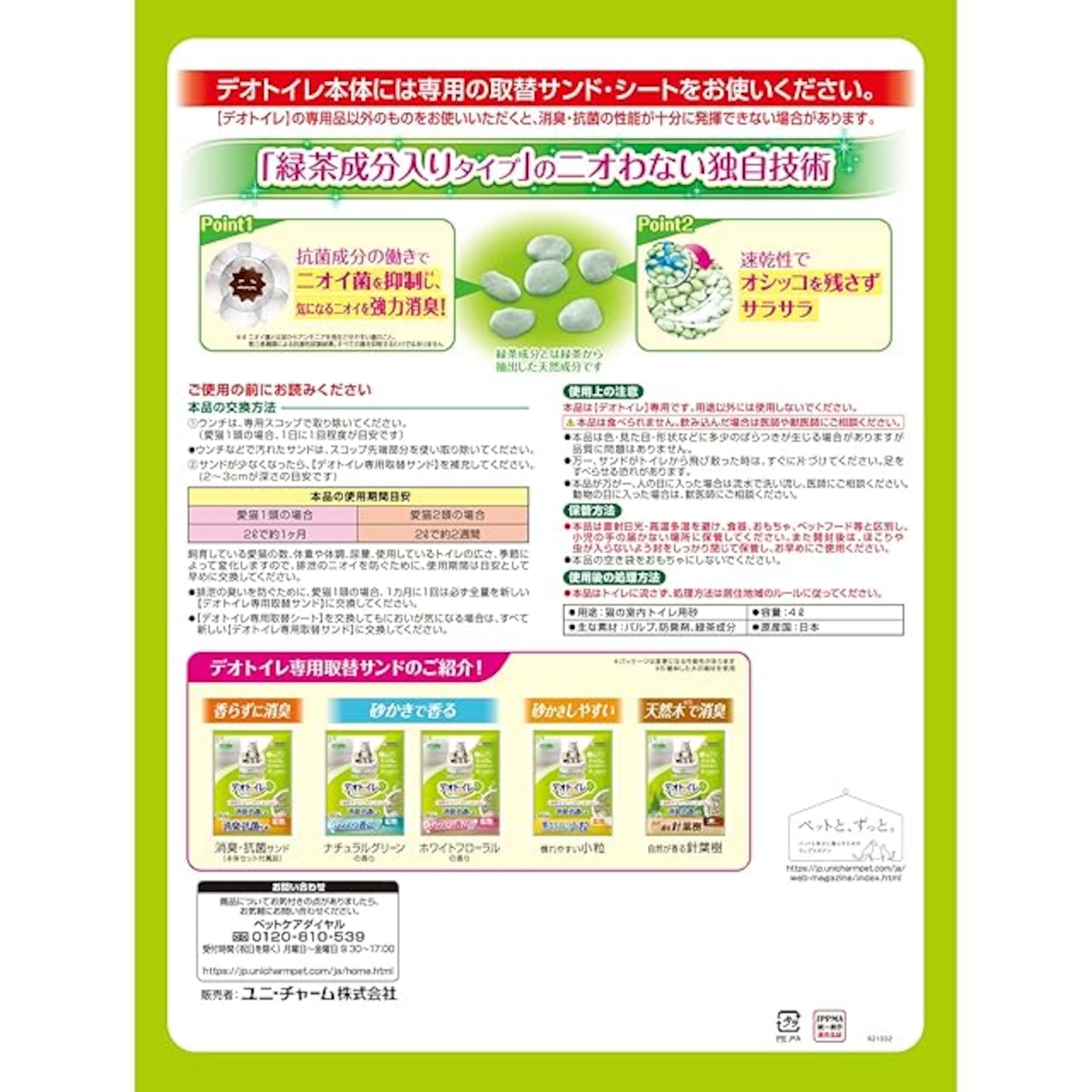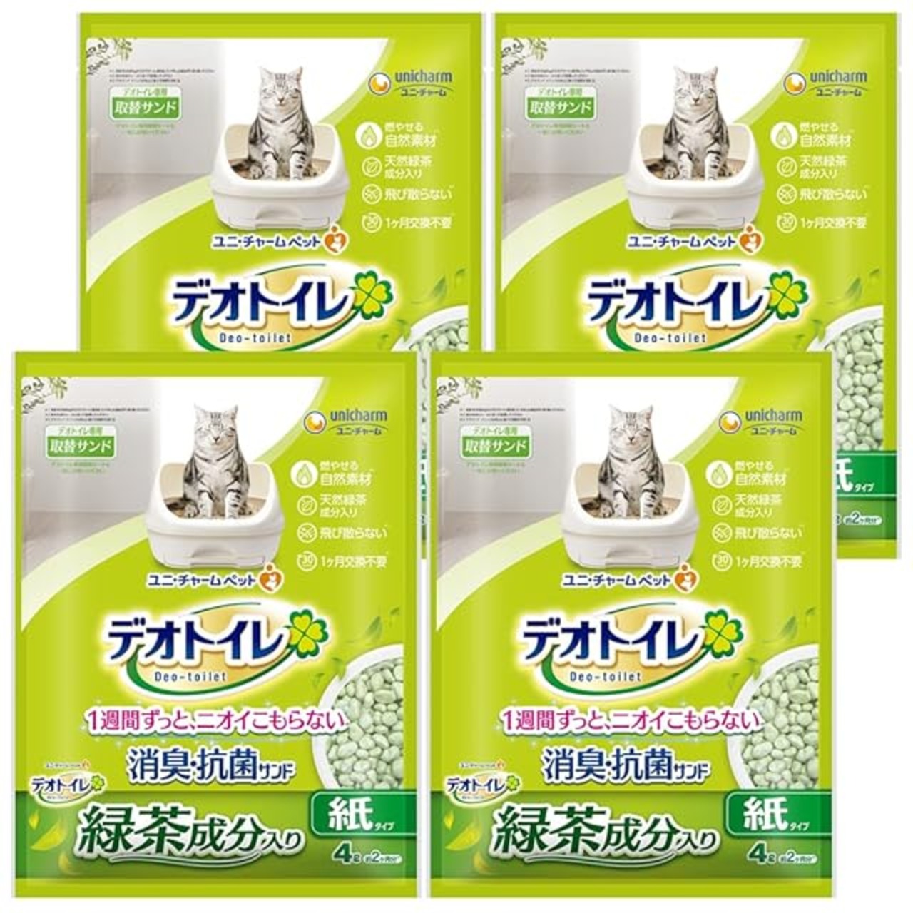デオトイレ 1週間消臭・抗菌 飛散らない緑茶成分入り・消臭サンド 4L×4個入り 【ケース販売】 グリーンティー