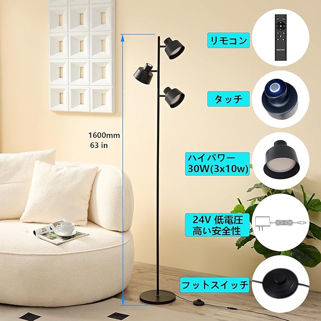 Joyly Home LEDフロアスタンドライト 高輝度・省エネ| 調光・調色・タイマー機能付き | リモコン & タッチコントロール | 目に優しい・眩しくない | 三つの独立光源制御可能 | 金属製 | 北欧スタイルでおしゃれな間接照明 | primer