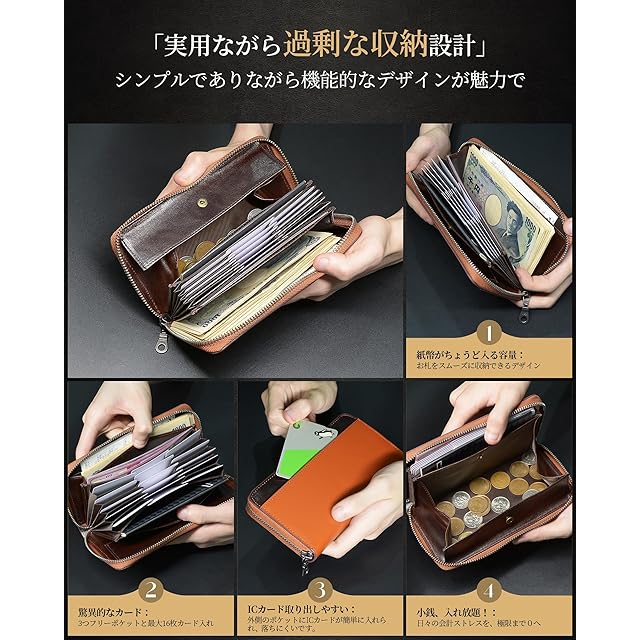 16枚のカードポイント、超大容量の小銭入れ、3つのフリーポケット、そして、 外側ポケットを備えています。これにより、クレジットカードやメンバーカードを整理し、YKKファスナーを採用している。このメンズ 財布は大量の小銭やレシートをすっきりと収納できます。多機能なデザインで、日々の持ち物をスマートに管理することができます。