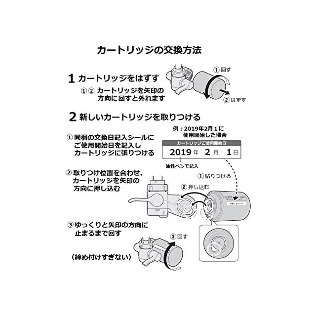 カートリッジの交換時期の目安:約6か月(1日10L使用時)