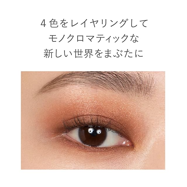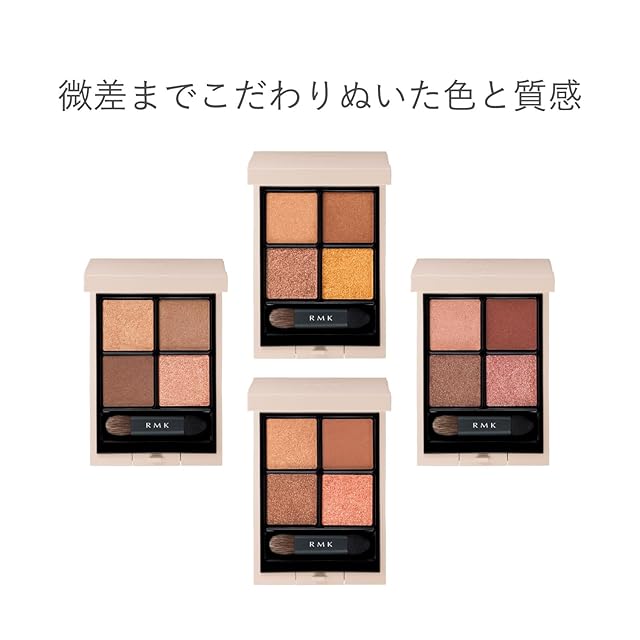 微差までこだわりぬいた色と質感のニューエッセンシャルパレット。重ねるごとに深みを増し、さまざまな質感やきらめきが混ざりあってつくり出すのはまるでワンカラーのように美しい、やわらかくモダンなスモーキーアイ。RMK 新質感のライトシャイニーを含む、シャイニー、シマー、パールシマー、マットのきらめきやツヤを放つ質感と色は、それぞれが主役級でありながら4色すべてを重ねても濁らず、奥ゆきを生みながらもダークにならない設計を追求しました。白膜感や厚みの出にくい処方だから、肌の色をいかしてクリアに発色。透明感とツヤのあるパウダーが、まぶたにやわらかくのび広がり、しっとりと肌と一体化。肌になじみながらも主張する奥ゆきと透明感が目もとを彩り、まとう人のパーソナリティをよりいっそう引き立てます。