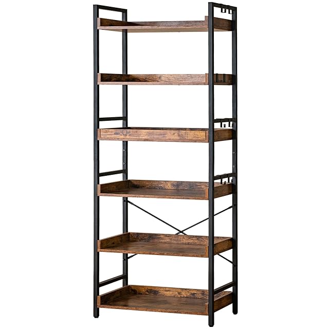 HCHQHS ラック キッチン 棚 おしゃれ 収納 オープンシェルフ 本棚 幅60 6段 ディスプレイ 木製 食器棚 スリム アイアン ウッド リビング 収納 レンジ 木目 組立簡単 (古木色, H6-幅60) | primer