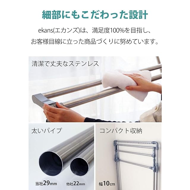●パイプをさし込むだけの簡単組立(工具不要)<br> ●通気性バツグンのダブルバー<br> ●洗濯物が片寄らないハンガー掛け<br> ●幅も高さも伸縮自在<br> ●さびにくく丈夫なステンレス製<br> ●安定・安心の29mmパイプ<br>