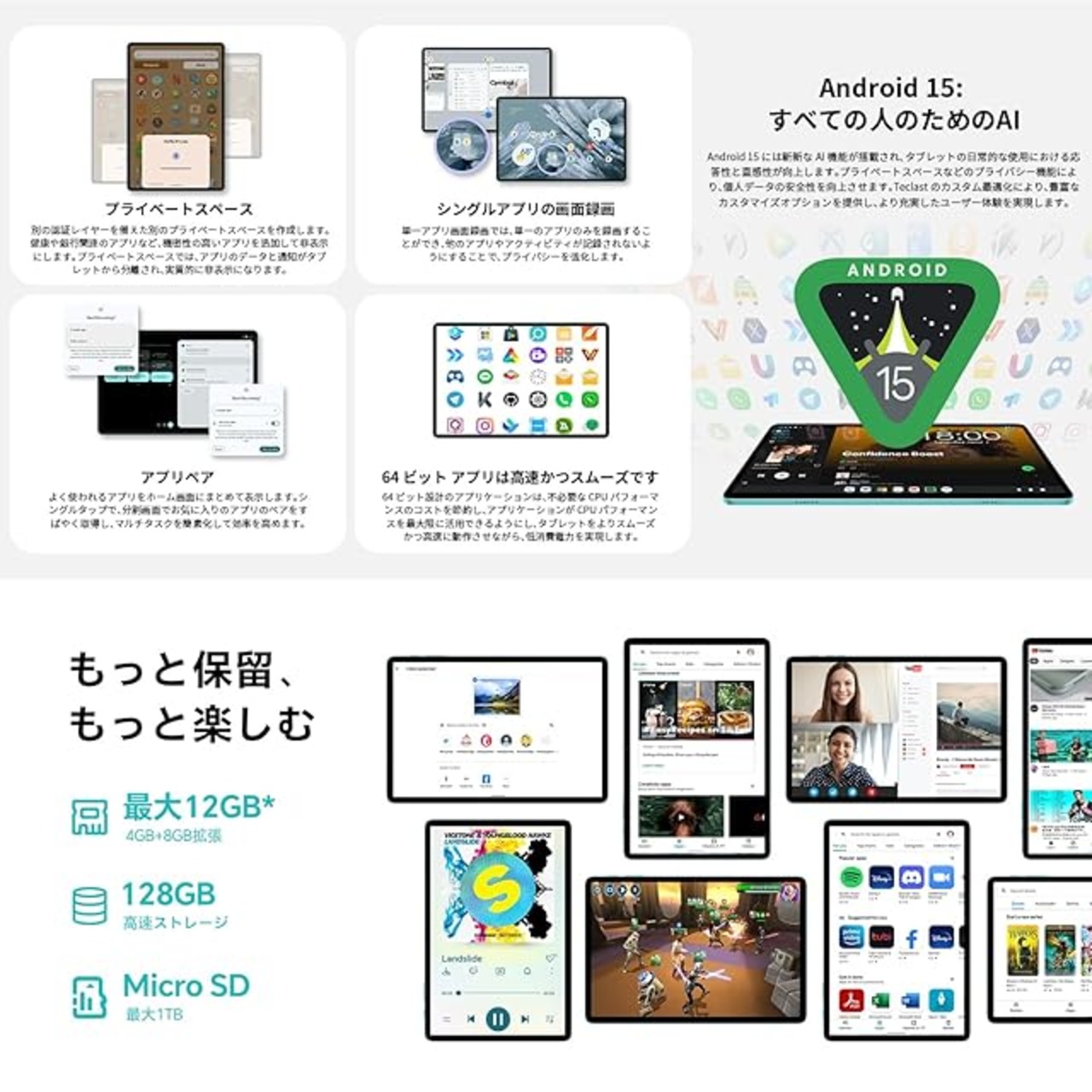 【最新Android 15搭載でスマートかつ安全な日常使用】 Android 15のAI機能で応答性と直感性が向上。プライベート空間を設定可能(別パスワード必要)、シングルAPP画面録画やタスクバー非表示に対応。シーン例: 仕事とプライベートの切り替えが簡単で、機密情報を保護しながら効率的な作業を実現。