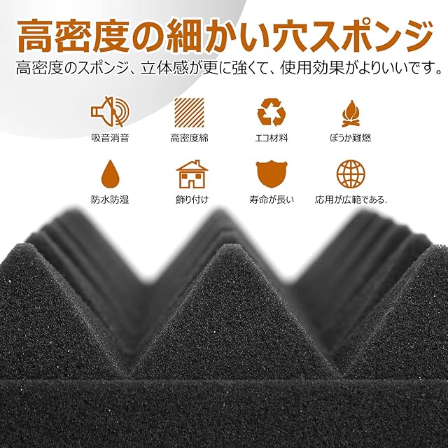 <br><b>仕様:</br></b> <br>形状:ピラミッド</br> <br>寸法:1パックあたり30x30x5 cm</br> <br>カラー:ブラック</br> <br>素材:ポリウレタンスポンジ</br> <br></br> <br><b>パッケージは以下を含みます:</br></b> <br>吸音パネルの36パック</br> <br>取り付け手順x1</br> <br></br> <br><b>特徴:</br></b> <br>高いノイズリダクション</br> <br>エコーと定在波を排除します。</br> <br>サウンドの明瞭さと品質を向上させます。</br> <br>インストールと削除が簡単です。</br> <br>より良い録音を取得し、あなたの人生を楽しんでください。</br> <br></br> <br><b>注:</br></b> <br>これらのサウンドフォームパネルは真空シールされています。互いに分割し、数時間待って通常の形状に戻してください。 元のサイズに完全に戻る前に、パネルを取り付けないように注意してください。 端の部分を元に戻すのが難しい場合は、これらのパネルを1分間水に浸してから、絞って乾かします。</br> <br>測定方法や手動測定の違いにより、サイズのずれが2〜3mmになる場合があります。</br></br>注意: 多孔質スポンジ構造には反響音の吸収・騒音低減効果が認められますが、最終的な効果は以下の要因に依存します:音源の大きさ、壁体の遮音性能、吸音材の施工面積と数量。