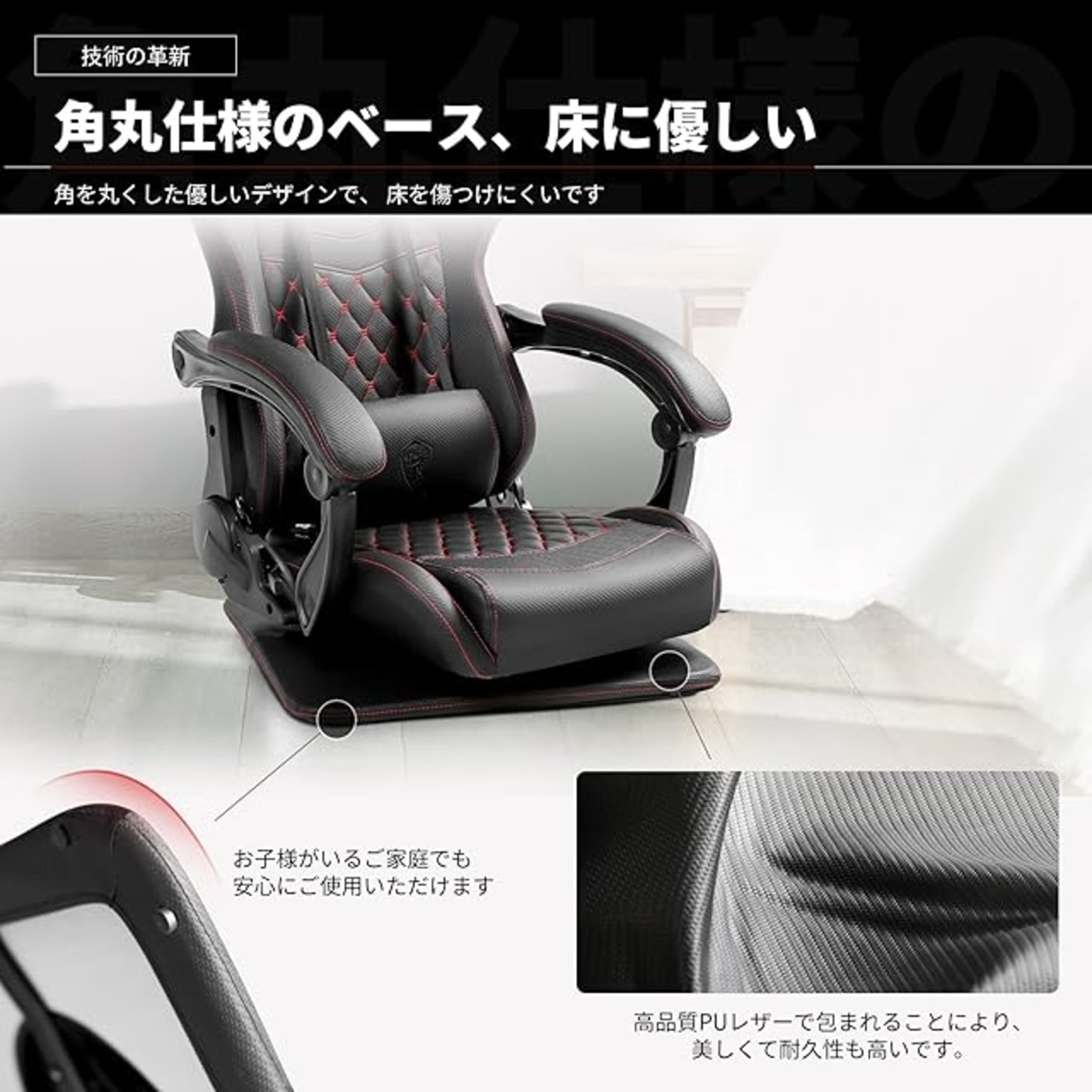 【通気性・耐久性】表面には耐摩耗性の強い炭素繊維PUレザーを採用しており、キルティング刺繍入りの柄で通気性を33倍向上させ、見た目も満点です。ベースは高級PUレザーで包まれることにより、美しくて耐久性も高いです。角を丸くした優しいデザインで、床を傷つけにくいです。