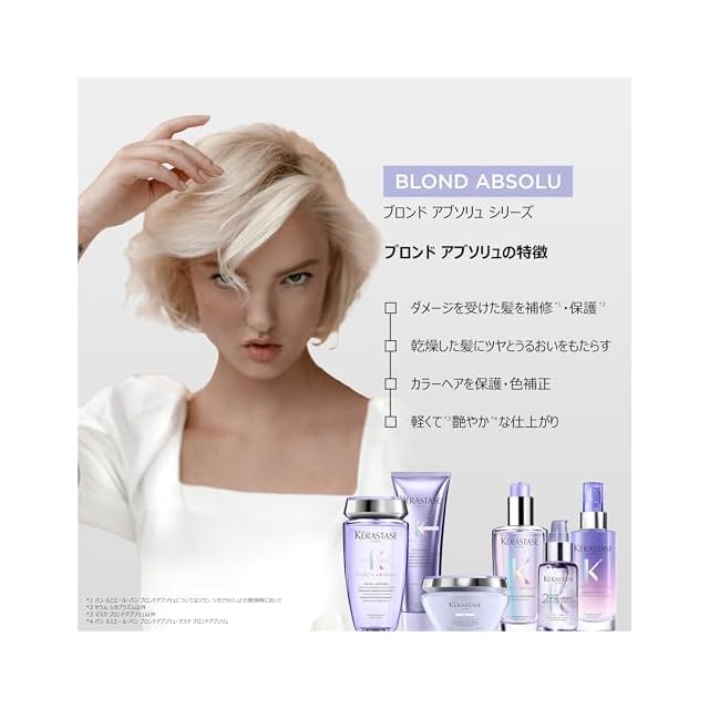 ケラスターゼ初 ハイトーンカラーやブリーチの悩みにも応えるカラーケアシリーズ<br> ハイトーンカラーヘアを補修*し、軽さと潤いを与えるデイリーヘアトリートメント<br> *バン ルミエールとの併用時において