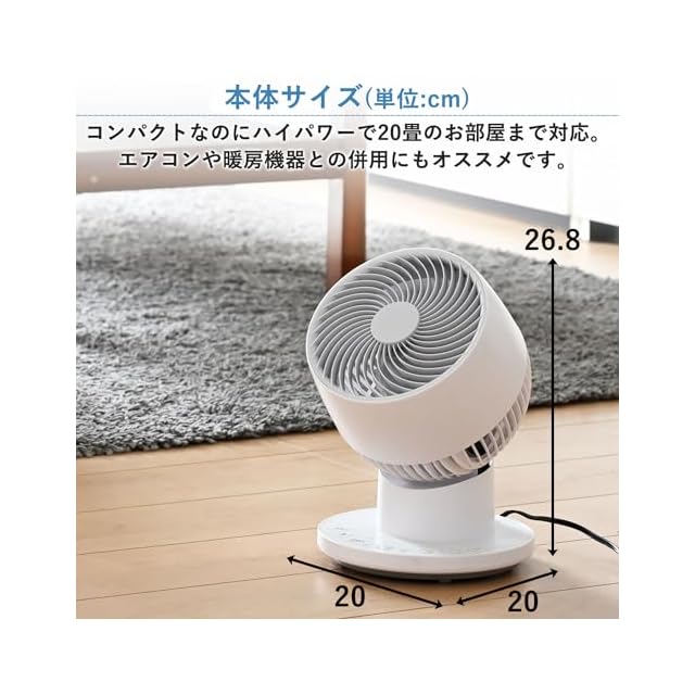 【商品仕様】◇本体サイズ:幅20×奥行20×高さ26.8cm ◇本体重量:1.4kg ◇適用床面積(目安):20畳 ◇電源コード:約1.6m ◇電源:AC100V(50Hz/60Hz) ◇消費電力:17W(50/60Hz) ◇保証期間:お買い上げ日より1年間(保証の範囲については、取扱説明書をご確認ください。(一般家庭用以外(業務用など)に使用された場合の故障及び損傷などは保証対象外となります))