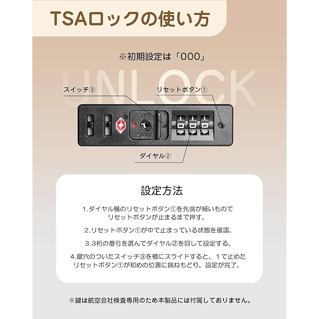 【合理的な仕切りデザイン&安心のTSAロック】スーツケース内部には柔らかく肌触りの良いポリエステル生地を使用し、密閉されたU字型コンパートメントが荷物を整理し、荷崩れを防止しながらプライバシーも保護します。さらに、メッシュ状のポケットにより、入れ物が一目でわかります。X型ベルトの搭載により、荷物崩れを完全に防止します。また、世界基準のTSAロックが装備されており、アメリカ空港での利用にも安心です。ダイヤル式ロックなので、鍵をなくす心配もありません。