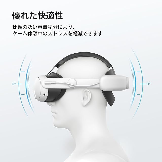 【幅広いヘッドサイズに対応した快適フィット】当社のQuest 3に対応ストラップは拡張デザインのブラケットが約45~75cmの頭周りをしっかりサポート。頭部を包み込むようなサポート設計が、ヘッドセットの重量を分散。VR体験中の負担を軽減し、没入時間をさらに延ばせます。