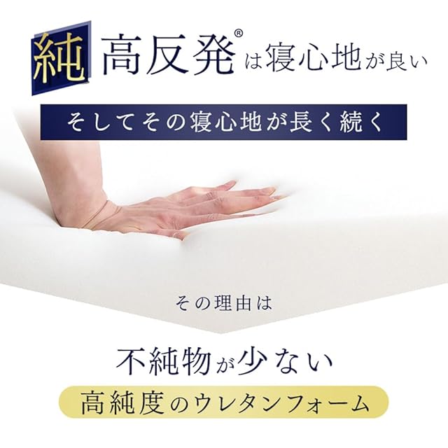 【特徴】・厚みたっぷり10cmで、1枚でも底付き感のない寝心地 /・硬め210N /・お子様にも安心の低ホルムアルデヒド0.007ppm /・ウレタンフォームの臭いを軽減する除臭加工済 /・ISO9001認可工場による安心の品質
