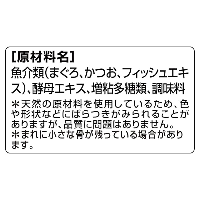 栄養成分:タンパク質:10.0%以上、脂質:0.3%以上、粗繊維:0.5%以下、粗灰分:3.0%以下、水分:88.0%以下