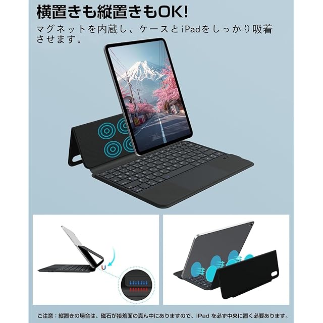 ✅☆【一体型&磁気吸着式&超薄型&軽量】 この10世代 ipad キーボード付きケースは、bluetooth キーボードとケースが一体型で、ほかの脱着式キーボードケースよりもっと薄くて軽量、厚さは1.7cm、重量は485g、持ち運びに便利。また、ipad 10世代 キーボード付きケースは、ケースにマグネットを内蔵し、ケースとiPadをしっかり吸着させます。ケース材質が丈夫で手触りも良いです。ipad 10世代 ケースは、スタンド機能搭載で、iPadを立てかけることができ、横置きも縦置きもオッケー、映画鑑賞にはもちろん、仕事用や勉強用にもおすすめ!
